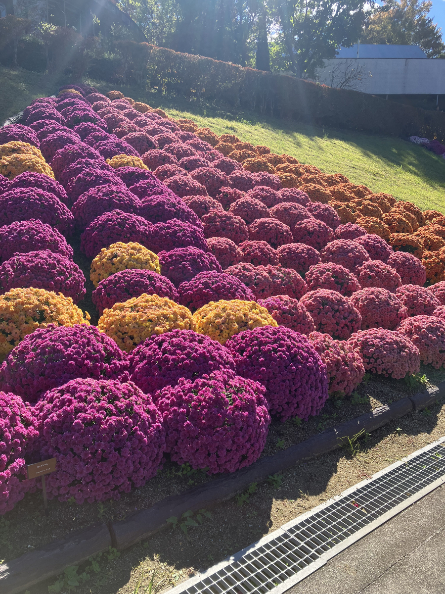 こちらはガーデンマム。ジャックリーン ピンク と表示されています。どちらの方向を向いても綺麗な景色で、天空に浮かぶラピュタを思い浮かべます。